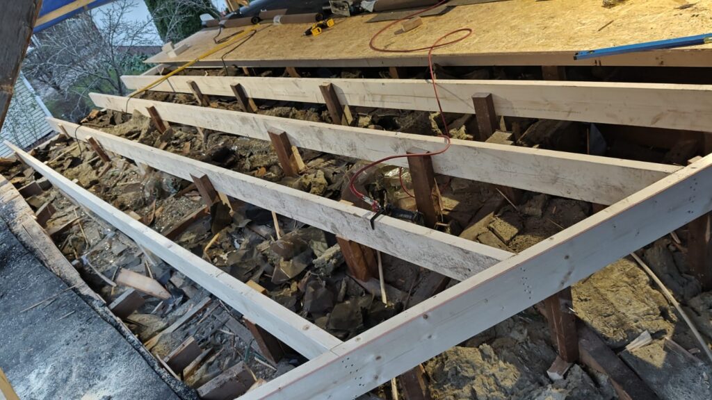 - rakennetaan uusi vähäkalteinen yläpohjarakenne