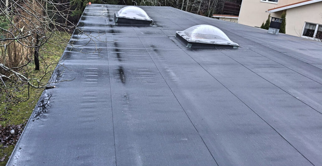 Vesi ohjautuu pois katolta suunnitellusti – ei lammikoita, ei jääongelmia.